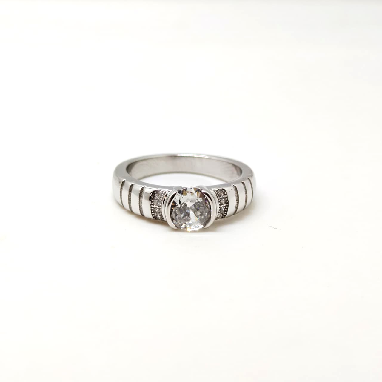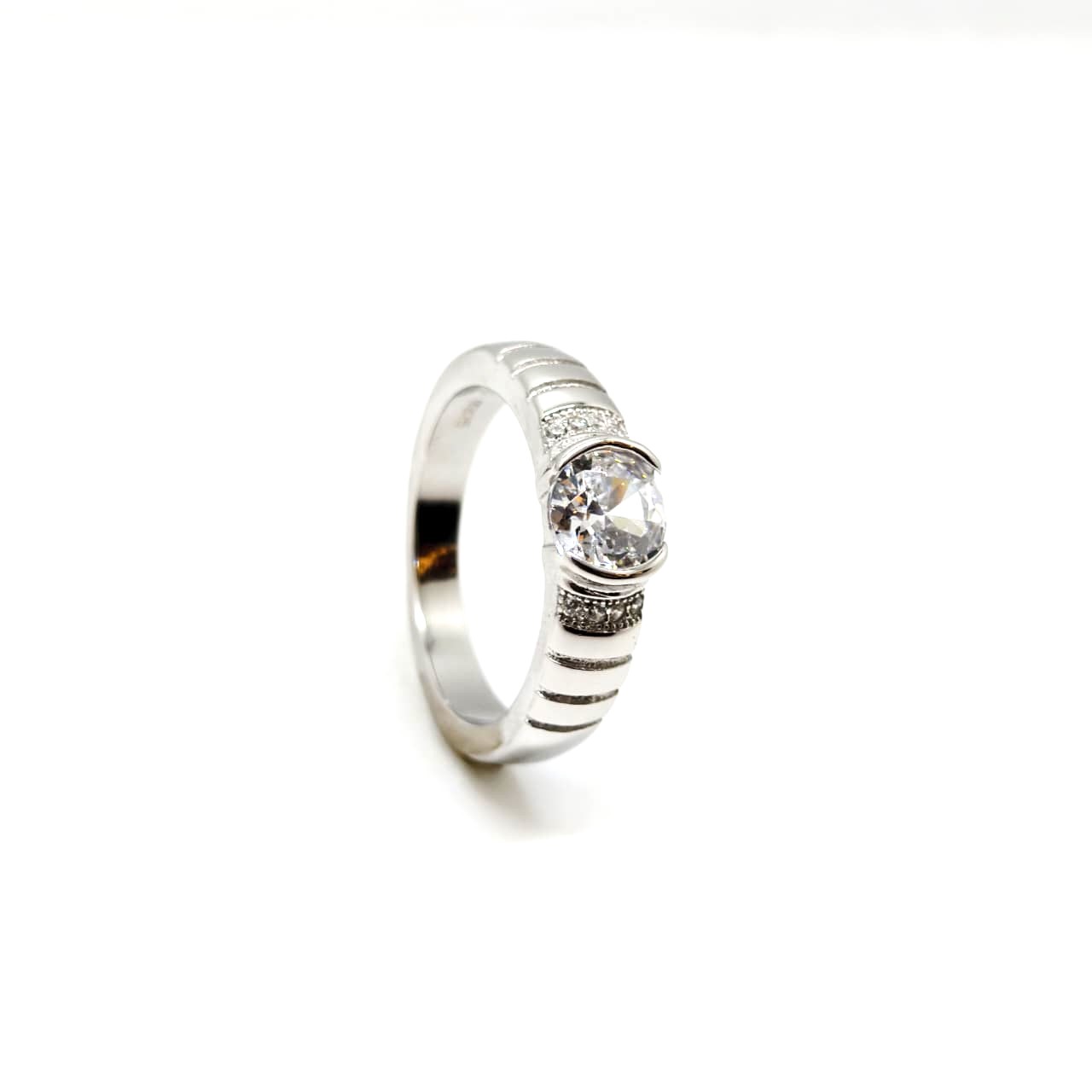 The Diamond Dewdrop Ring captures the freshness of dawn with diamonds delicately placed along a sleek silver band, evoking dew glistening in sunlight.