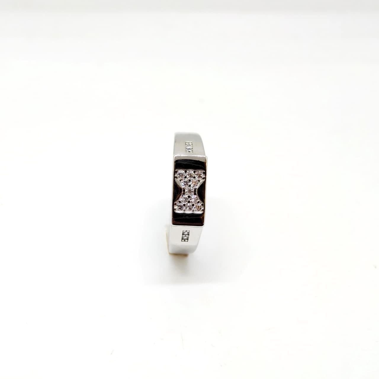 Silver floral-inspired design.