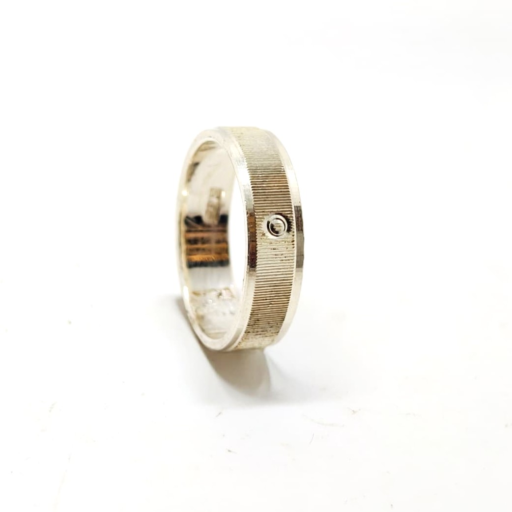 The Harmony Twist Ring intertwines polished silver strands and a central diamond, symbolizing balance and unity in love.