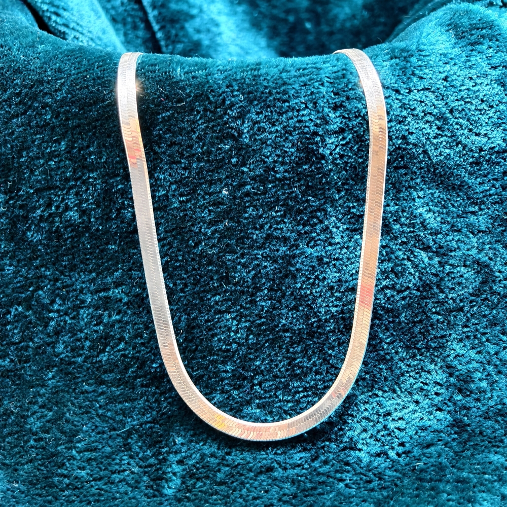 Fluid and elegant, Raya Snake hugs the neckline with sleek, zigzagged tight links