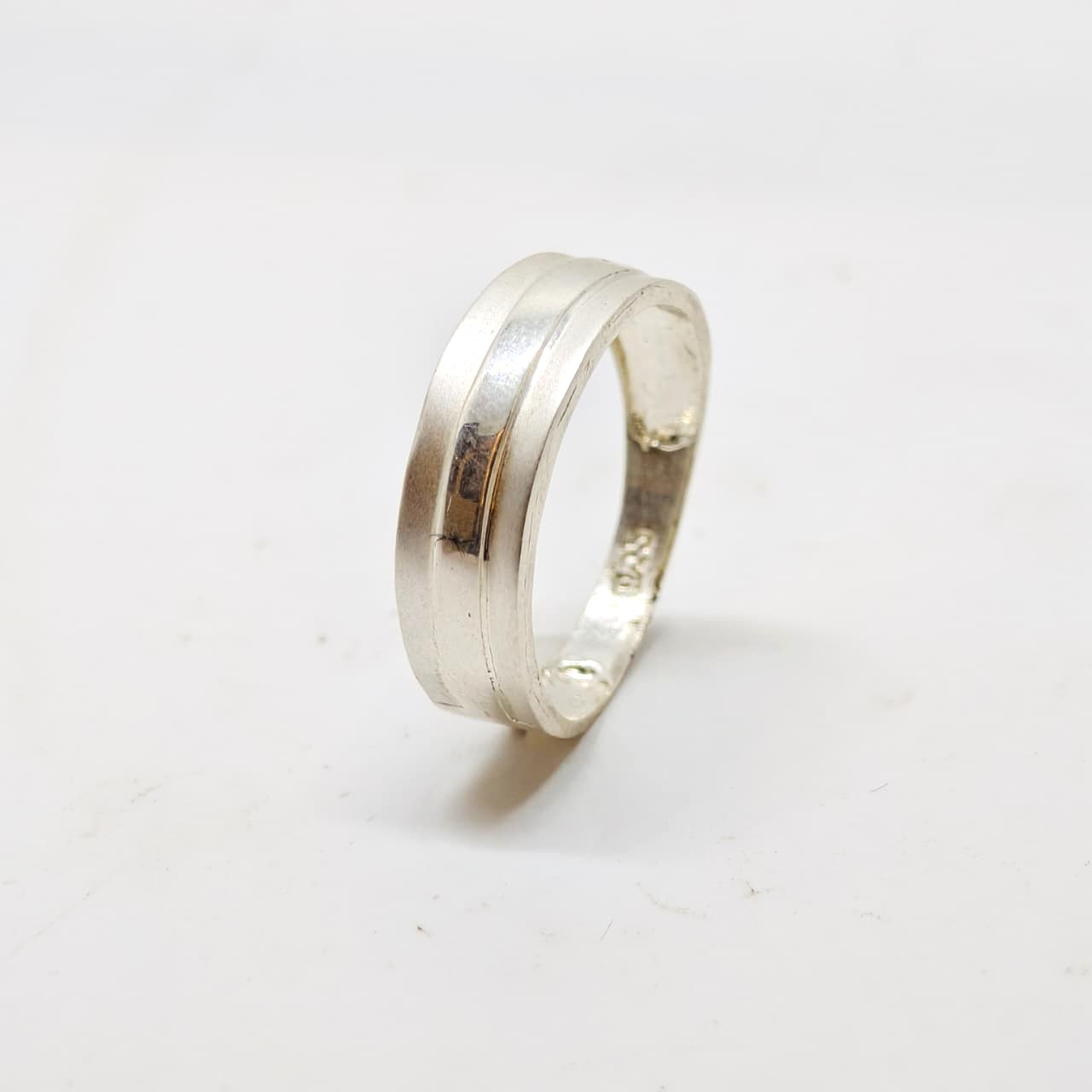 The Sacred Flow Ring carries fluid silver lines that represent balance, peace, and the journey of life.