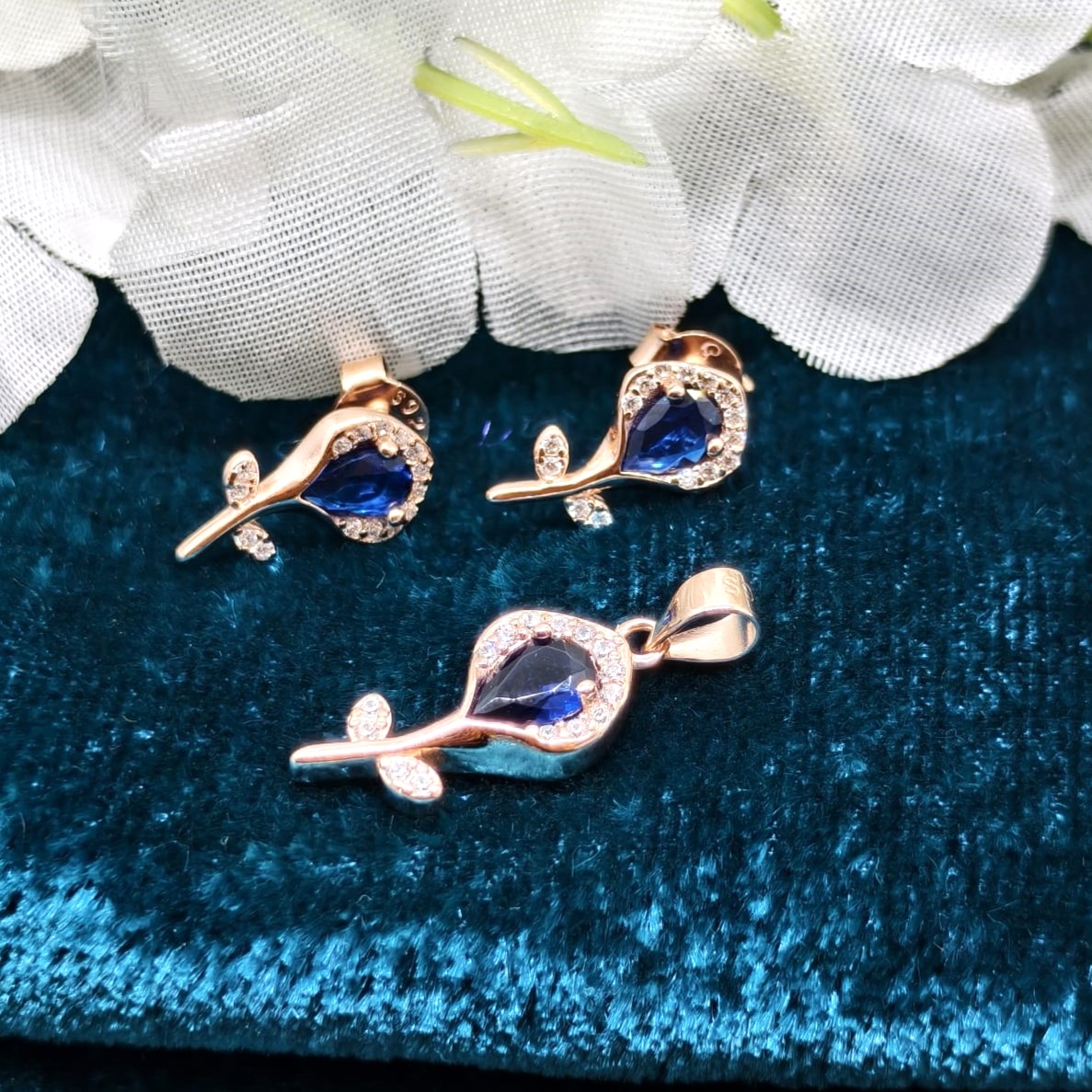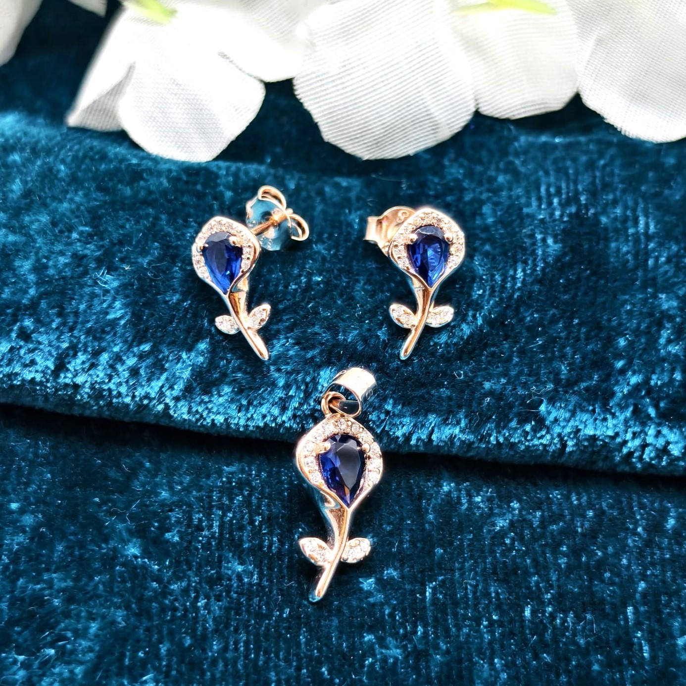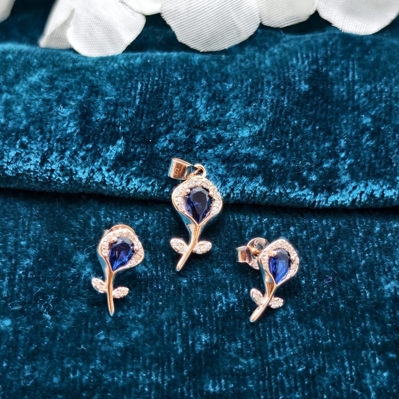 Silva Petal Silver Pendent Earrings Set