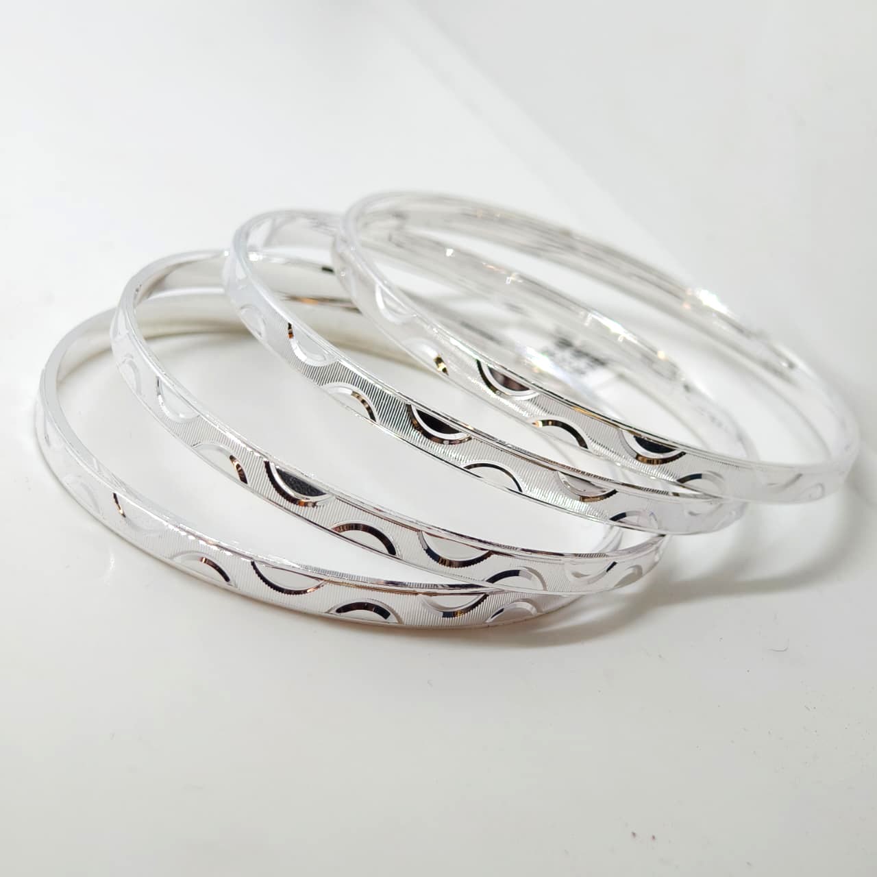 curated stack of five unique 925 silver bangles in various widths and textures—great as gifts or to create a signature layered look.