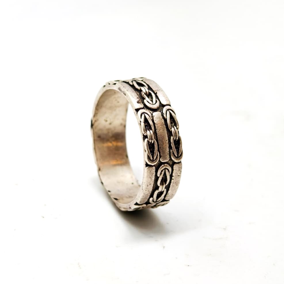 Bold tribal-pattern oxidized ring.