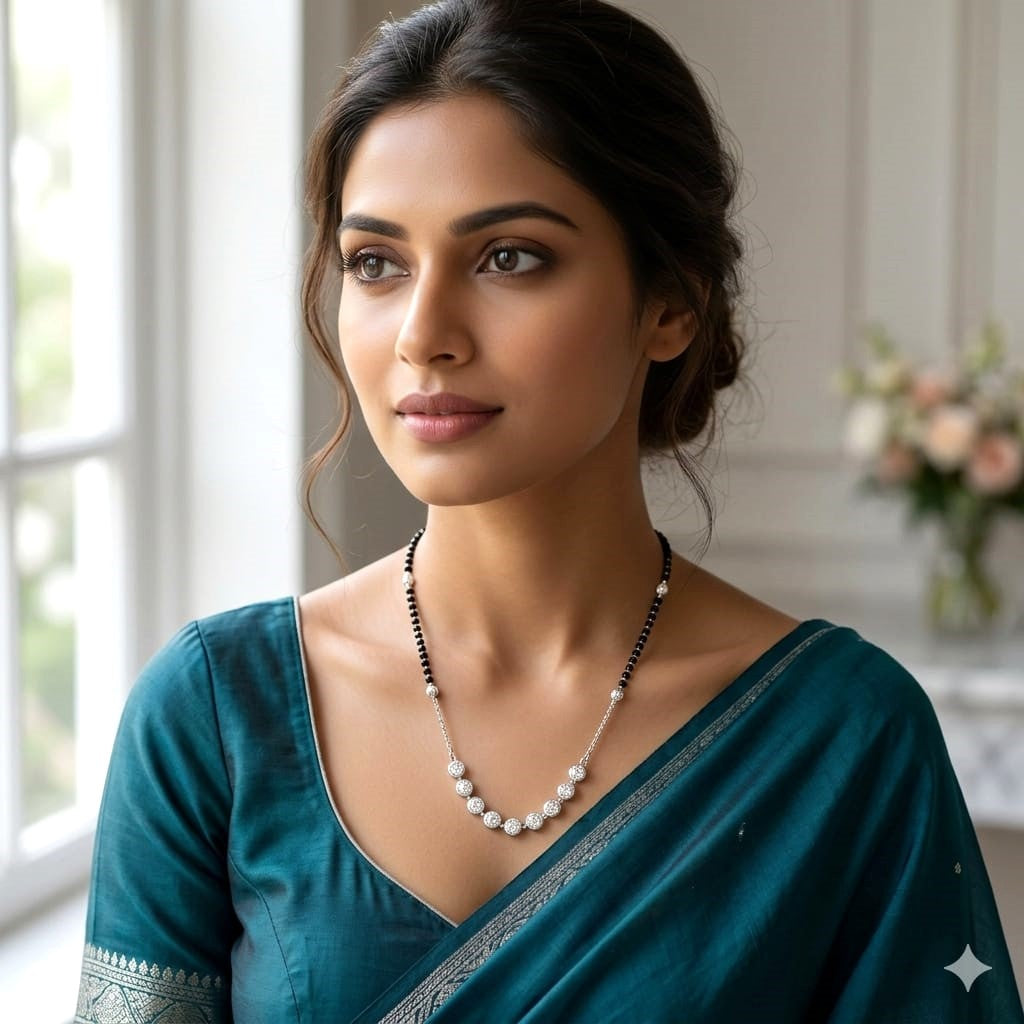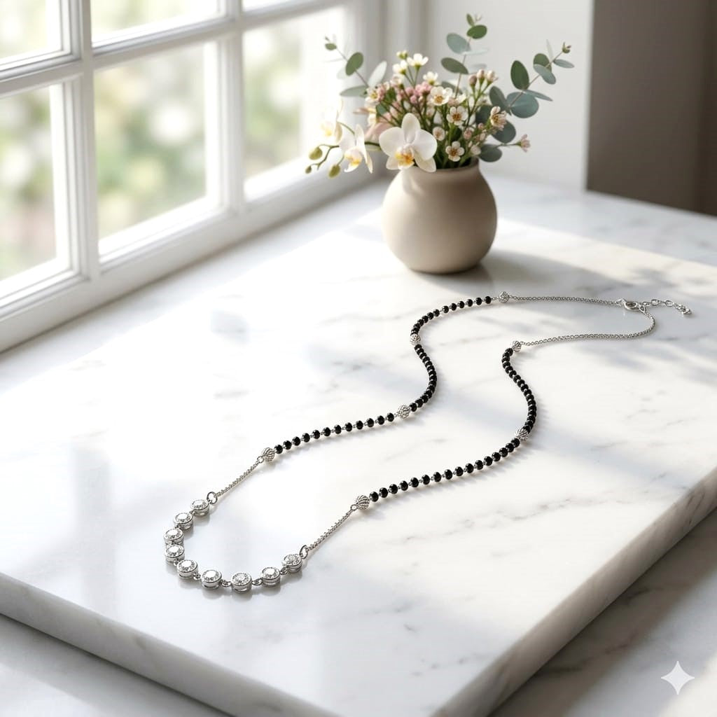 A modern mangalsutra with a sleek circular pendant that symbolizes completeness and eternal love.